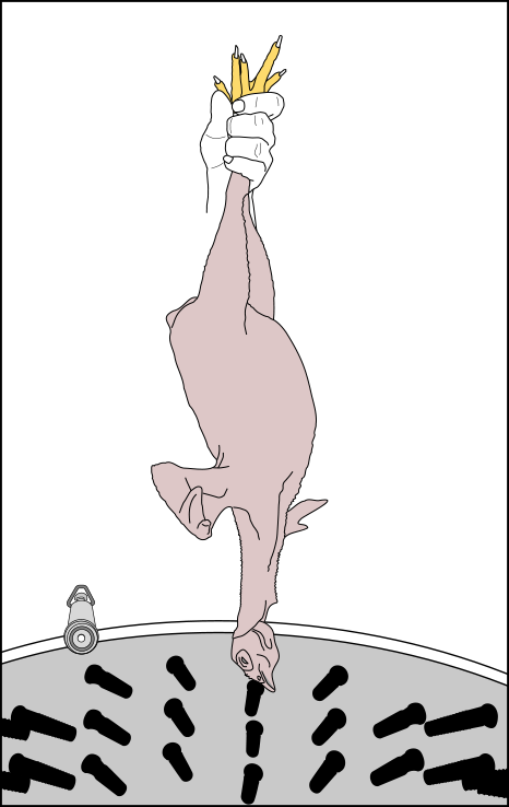 - Suspendez un oiseau au-dessus de la cuve de travail