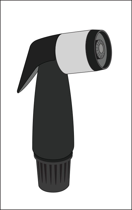 - Un pistolet d’arrosage raccordé à un boyau d’eau potable pour le rinçage des poulets pendant et après la plumaison (1);