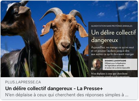 Très critique de l’industrie agroalimentaire, mais aussi très perplexe devant les actions posées par les militants de la cause animale, Dominic Lamontagne a voulu engager un dialogue avec un militant végane afin d’approfondir les enjeux liés à l’alimentation et à l’avenir de notre agriculture.