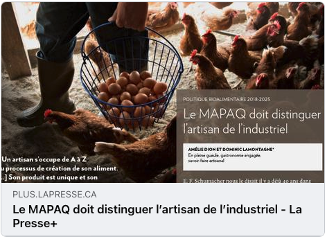 Le MAPAQ doit distinguer l'artisan de l'industriel